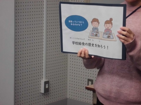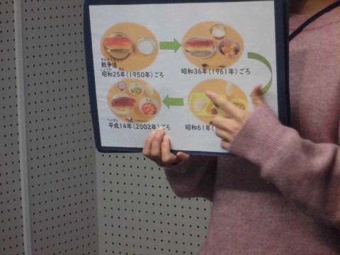 給食週間に合わせて、給食担当の先生から「学校給食の歴史」についてお話がありました♪時代とともに変わってきた給食の歴史がよくわかりました♪