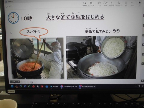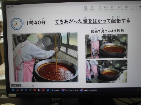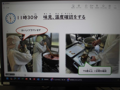 10時から調理開始し、11時30分には味見とともに大切な「温度確認」の作業を行っているそうです♪安心安全な学校給食を提供するための工夫されているのですね♪