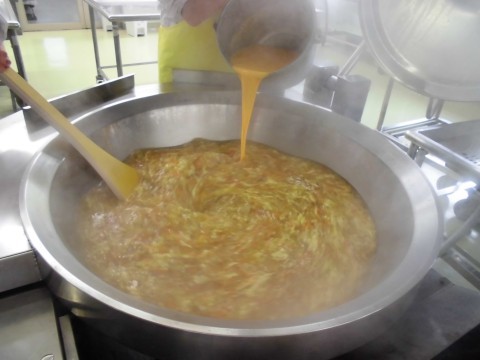 水溶き片栗粉を入れて、沸騰したスープの中に、スープの温度が下がりすぎないように細く卵を入れながらかき混ぜると、ふわふわの卵に仕上がります。