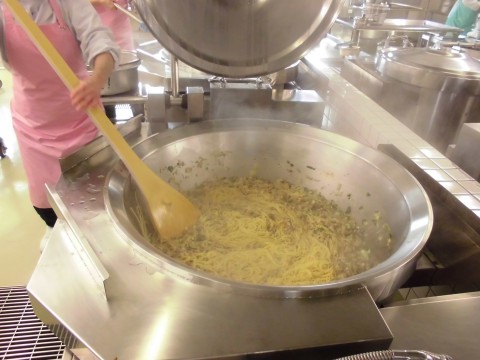 大おかずの和風スパゲティには、『なにわの伝統野菜』のひとつである、大阪しろなをいれました。