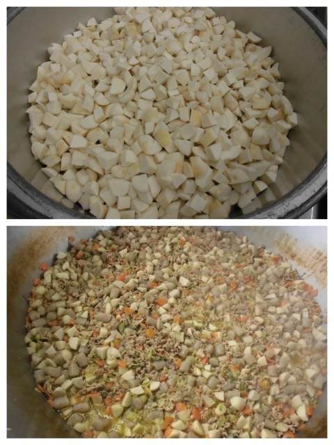 里芋は生野菜のものを朝から調理員さんが皮をむき,食べやすい大きさに切ってくれました。