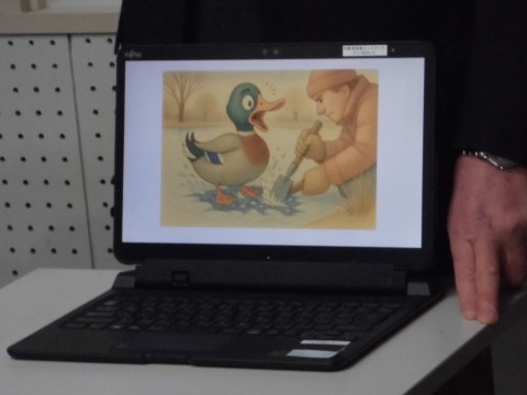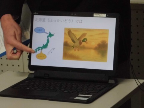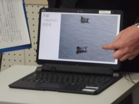 池で泳いでいる「かも」が、北海道などの寒い地域では、夜間に水が凍ってしまい、動けなくなることがあるそうです。