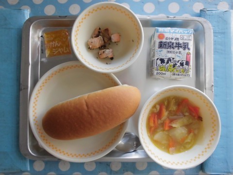 1年生では,みかんジャムはコッペパンにどうやってつけたら手が汚れないのか,おいしく食べられるのか,工夫をしながら食べてくれていました♪