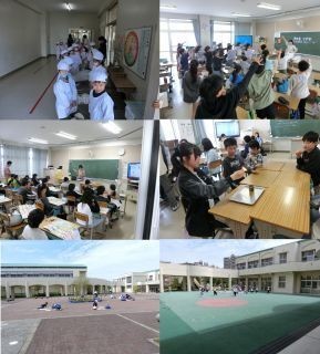 1年生は明日の給食準備の練習,2年生は広場でチューリップのスケッチ,5年生は外国語と家庭科の授業,6年生は理科でマッチを使いました。