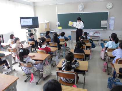 先生から、絵本や紙芝居を通してお話を聞いています!
