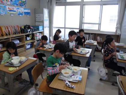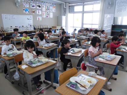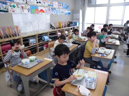 5月9日(火) 1年生給食のようす 公開日 2023/05/09 更新日 2023/05/09 給食 今日の給食は、 ・ごはん ・牛乳 ・関東煮 ・おひたし ・ふりかけ(しその香) です。 1年生も給食に慣れてきたようですね。 給食のようすをみにいくと、たくさん給食の感想を聞かせてくれます♪ 1年生は好きな食べ物を後にとっておく子が多いようです^^ 苦手な食べ物もみんなと食べる給食だとチャレンジできますね☆