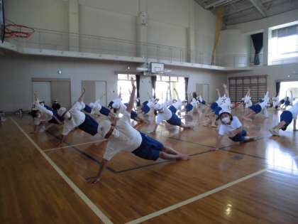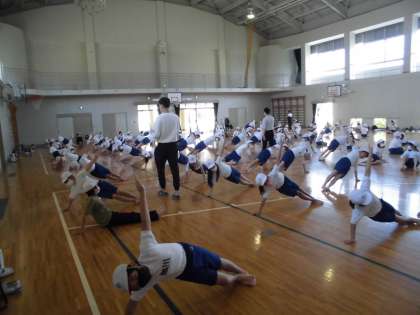 ケガをしないように、組体操の前には「心構え」を確認しました!