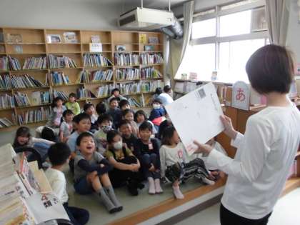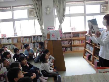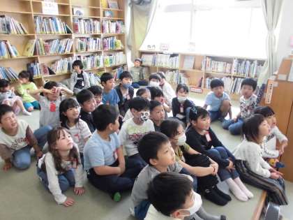 図書室の司書の先生による、絵本の読み聞かせの様子です!