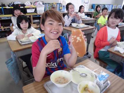 5年生のクラスでは、ちぎって食べているとコッペパンにネコができた!とみせてくれました!