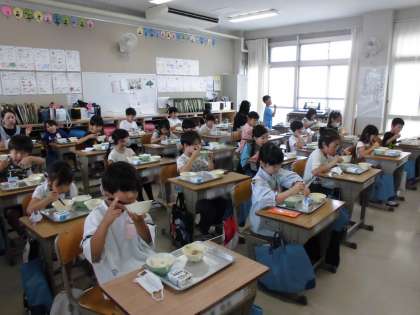 2年2組さん、5年1組さん、6年1組さんの給食のようすです♪