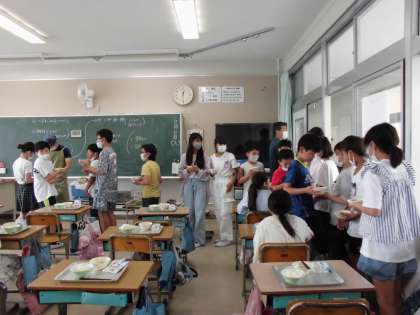 6年1組さんでは、野菜ラーメンのおかわりに長い列ができていました!