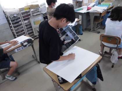 画用紙を見ながら、大きく描くための構成を考えていました!
