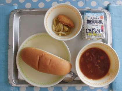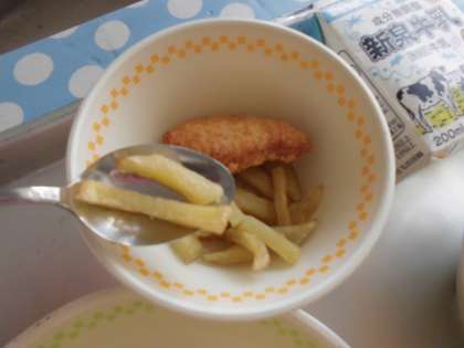 給食のフライドポテト、実は調理員さんがじゃがいもをひとつひとつ手作業で切り、油で揚げた手作りのポテトです☆
