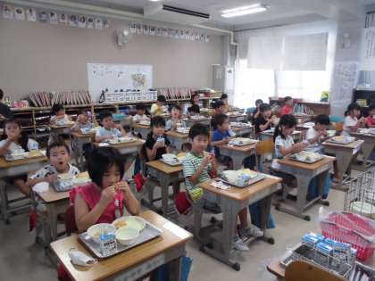 8月29日(火) 給食のようす 公開日 2023/08/30 更新日 2023/08/30 給食 1年生の給食のようすです。 今日は、給食に焼とうもろこしが出ました。 前歯がグラグラ抜けそうな児童もたくさんいて、食べにくそうでしたが、一生懸命かぶりついてくれていました☆