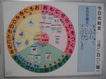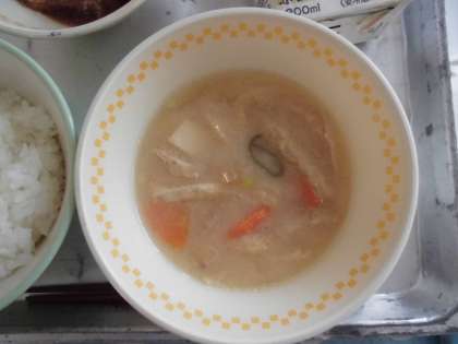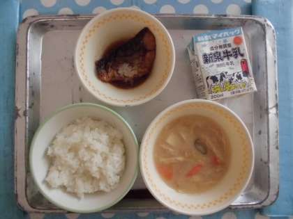 12月5日(火) 今日の給食 公開日 2023/12/05 更新日 2023/12/05 給食 今日の給食は、 ・ごはん ・牛乳 ・呉汁 ・さばのごま煮 です。 〜呉汁(ごじる)〜 大豆を水に浸して、すりつぶした物を「呉」といいます。 呉汁は、みそ汁に呉を入れて作ります。 呉汁は、群馬県や鹿児島県など日本各地で郷土料理として親しまれています。 給食では、ひきわり大豆や豆乳を入れて作っています。