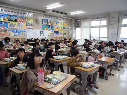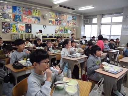 国語で「すがたをかえる大豆」の授業をした3年生は、呉汁を食べながら大豆が変身した食べ物を探していました^^