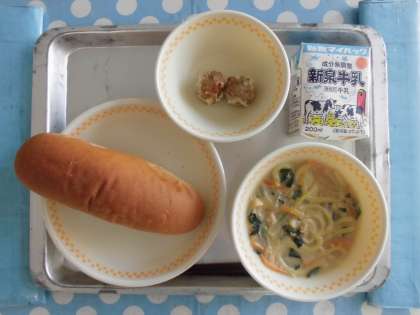 2月7日(水) 今日の給食 公開日 2024/02/07 更新日 2024/02/07 給食 今日の給食は、 ・黒糖パン ・牛乳 ・小松菜タンタン麺 ・焼シューマイ です。 〜堺のめぐみ〜 今日の大おかずの小松菜は、私たちが住んでいる堺市で作られたものです。 自分が住んでいる地域で作られた食べものを食べることを「地産地消」といいます。 「やきシューマイ」は、もう一度食べたい献立ランキング(オーブン料理)★2位★でした!