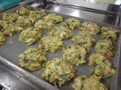 6月4日(火) 給食室のようす 公開日 2024/06/04 更新日 2024/06/04 給食 カルちゃん焼は調理員さんが生地をつくり、1つ1つ形を整えて並べ、オーブンで蒸し焼きにしています。 お味はどうでしたか?