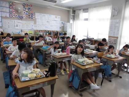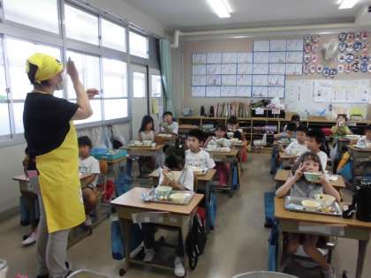 音楽の先生がお月見のおだんごについて話をしてくれていました。