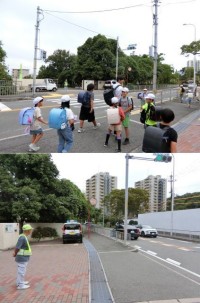 地域の方が登校の様子を見守ってくださっています。ありがとうございます。交通安全運...