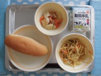 今日の給食は、・ミニコッペパン・牛乳・きのこスパゲティ・ポテトサラダ でした。き...