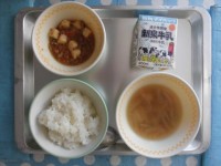 今日の給食は、・ごはん・牛乳・ワンタン・麻婆豆腐 でした。麻婆豆腐は中国の四川料...