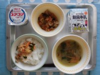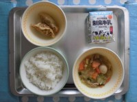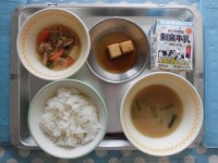 今日の給食は、・ごはん・牛乳・五目汁・厚揚げのしょうが焼・肉じゃが でした。今日...