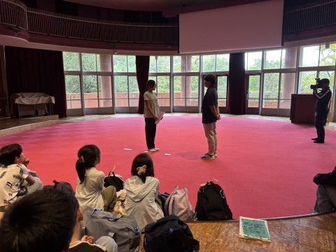 クラスごとに写真撮影をした後、オリエンテーションで施設の方からお話をききました。