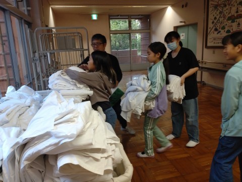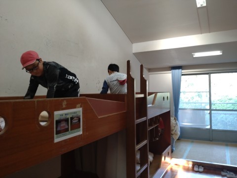 シーツを返却して、部屋の掃除や荷造りをおこなっています。