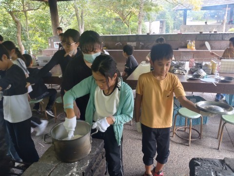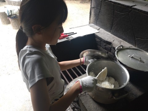 ご飯に空気を含ませたり、味見をしたり、出来上がりが待ち遠しい様子でした。