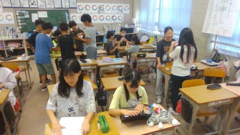 久しぶりの雨で、休み時間は教室で過ごしています。