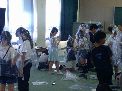 避難先になるもので、カッパを作りました。