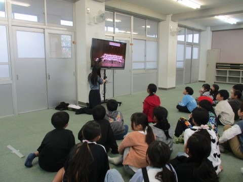 10月28日に行われた連合音楽会の鑑賞会をしました。自分たちの歌っている姿を見て,音楽の松嶋先生からもたくさんほめていただき,子どもたちも嬉しそうでした。