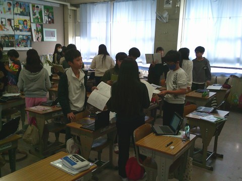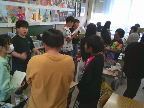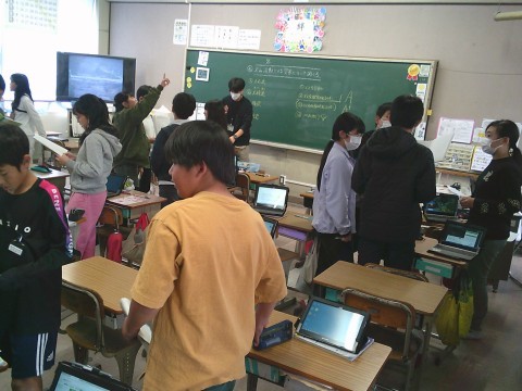 火山活動による災害について調べ、まとめたことを班で交流しました。