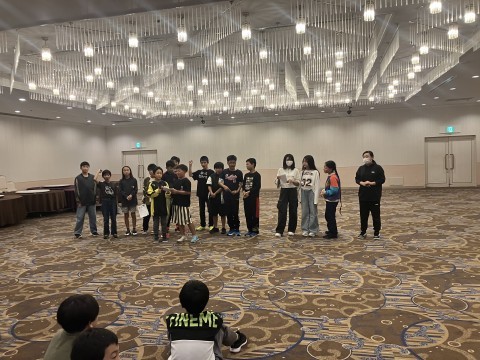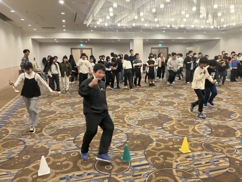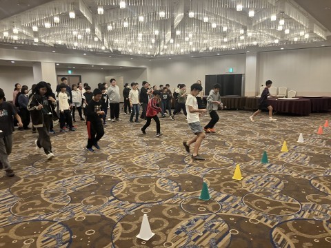夕食後、レクレーション係がリードして、レクレーションを楽しんでいます。