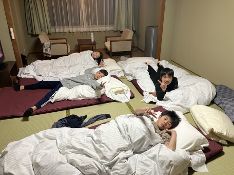 部屋で、リラックス。お風呂も入って、