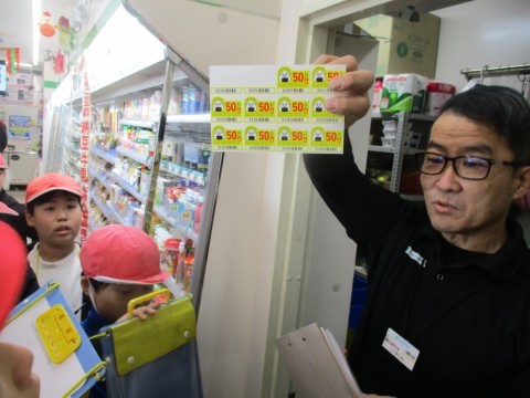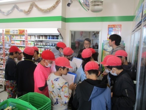 今日は,小学校の近くにあるコンビニで,食品ロスの実態についてのインタビューを行いました。
