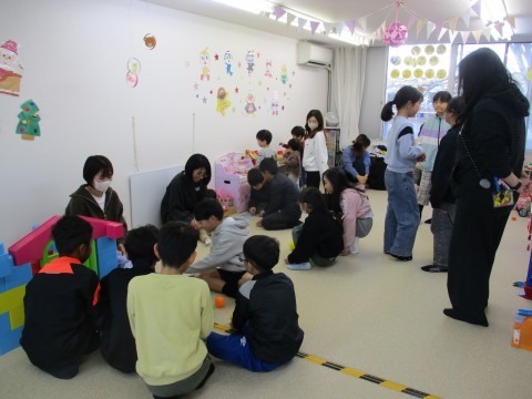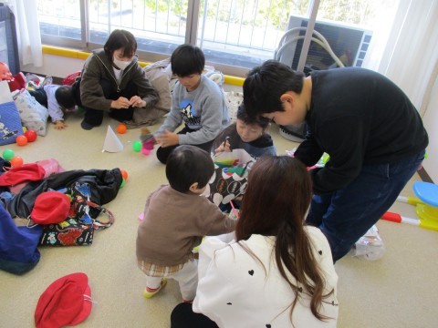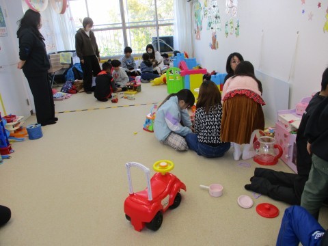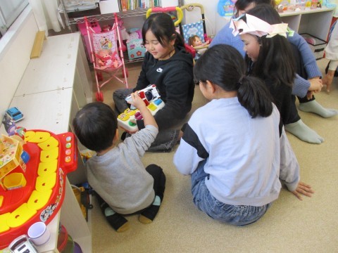 おもちゃで遊ぶ時は座って目線を合わせたり,