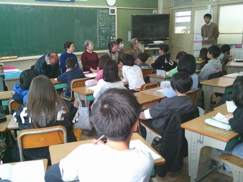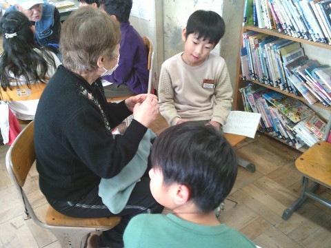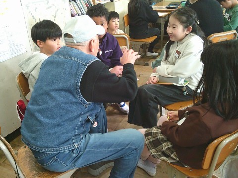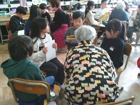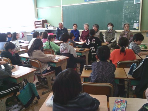 社会で昔の暮らしや道具などについて,老人会のみなさんにお越しいただき,