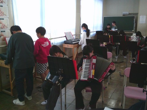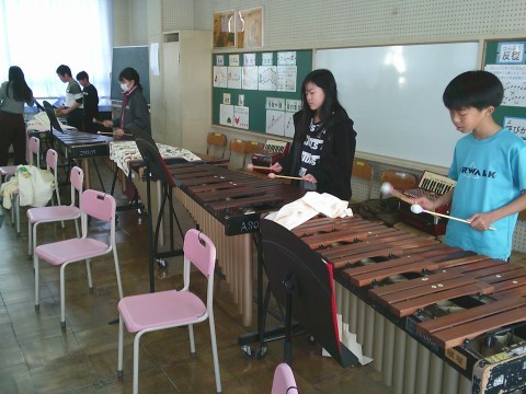 みんなの楽器の音色が重なり,一つの曲になってきました。