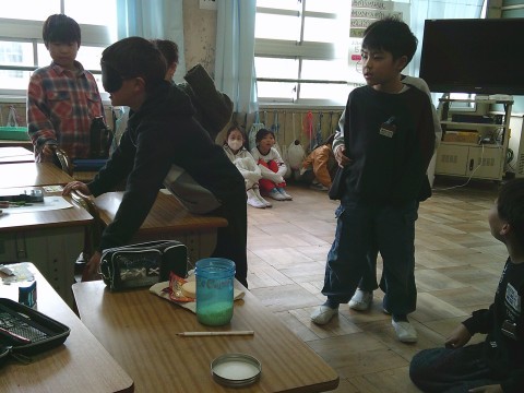 ことを,人間もできるのかどうか確かめてみました。目隠しをして,においのもとを見つけられるのか実験しましたが,