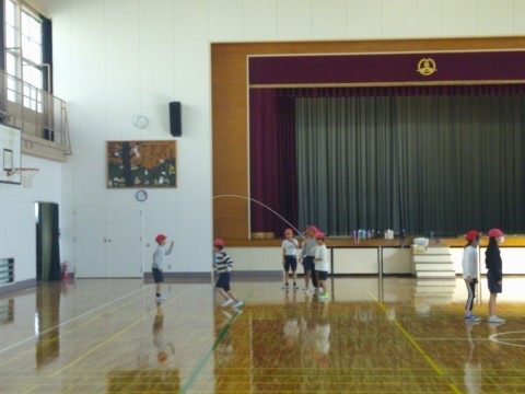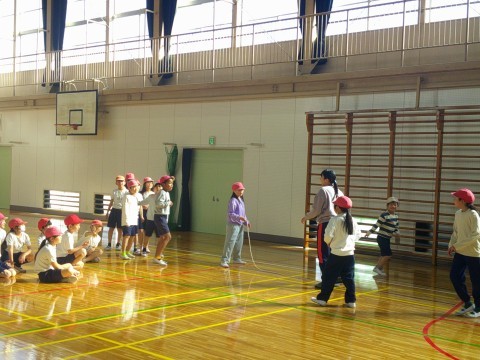 縄に入るタイミングや縄の回し方などを聞いて、大縄の練習をがんばっていました。