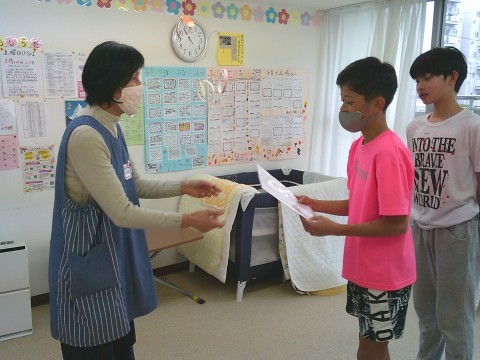 もらいにいきました。子育て広場の職員さんも,参加してくださった保護者のみなさんも