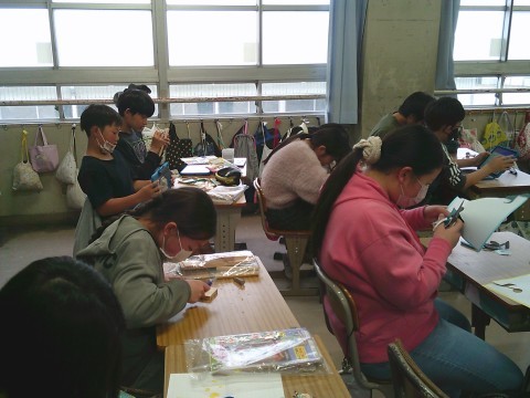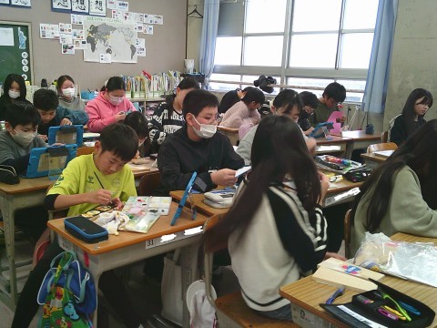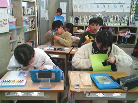 色づけをしてニスを塗ったりするなど,おもいおもいの作品に仕上げていました。