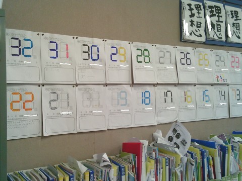 後ろの掲示板には,卒業までのカウントダウンカレンダーも掲示し,