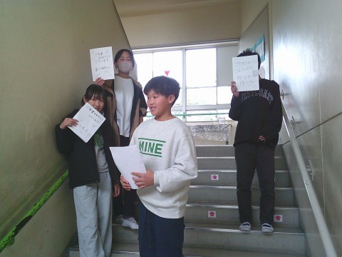 なかよし活動で下級生からのプレゼントを受け取り、とても嬉しそうな6年生。