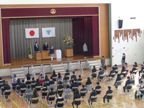 卒業証書授与の様子です。名前を呼ばれて大きく返事をし,真剣な面持ちで校長先生より証書を受け取りました。