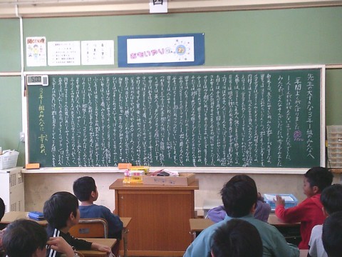 1組の教室に入ると、黒板の端から端まで、先生の思いが