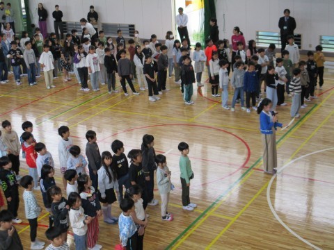 児童会代表から1年生への挨拶があり,1年生からも言葉がありました。