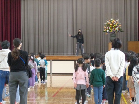 全学年で校長先生のお話を静かに聞きました。